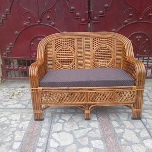 Bamboo Cane 2 Seater Sofa with Cushion for Living Room, Balcony, Garden & Patio