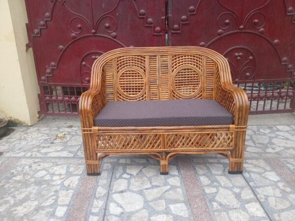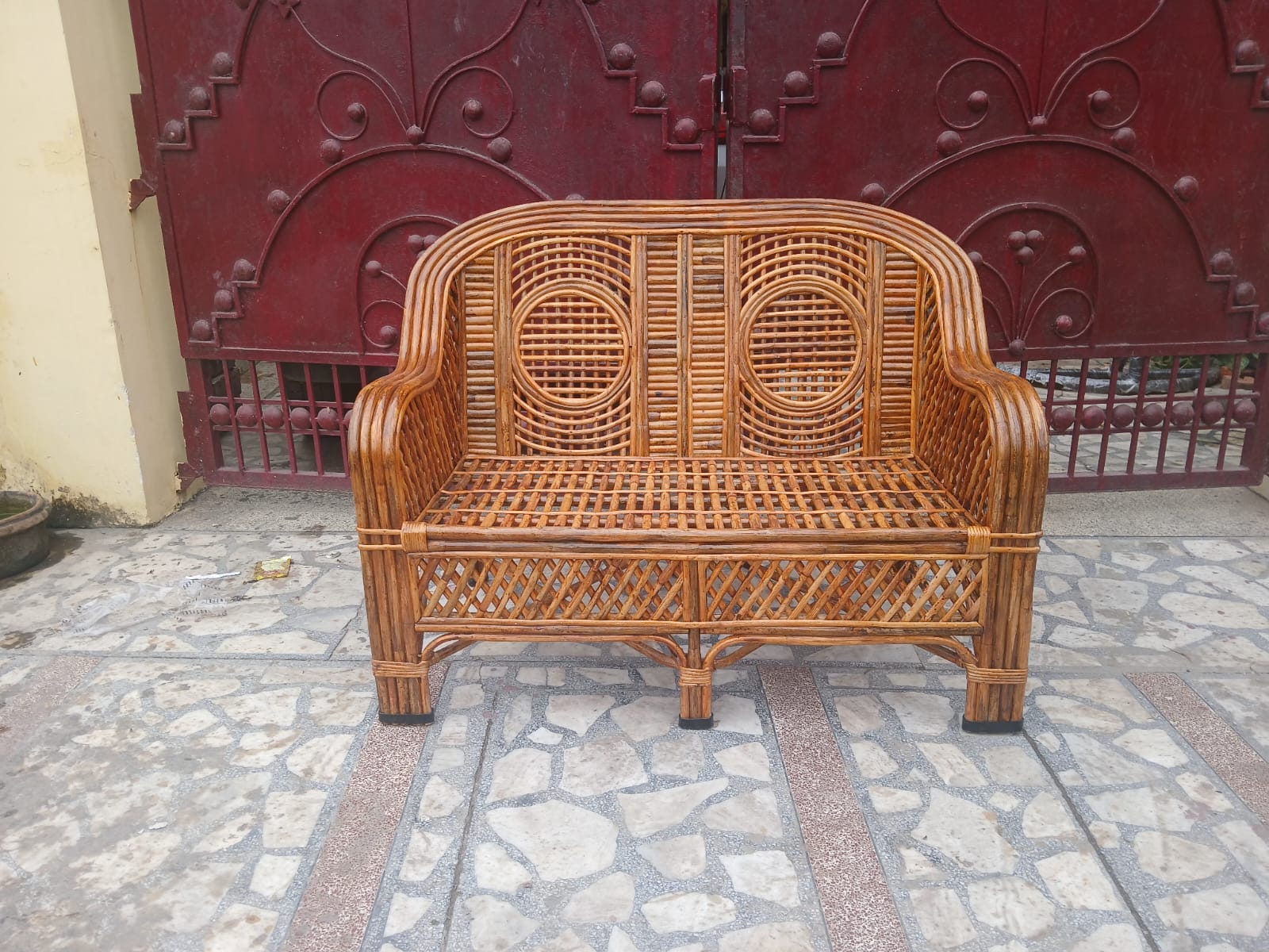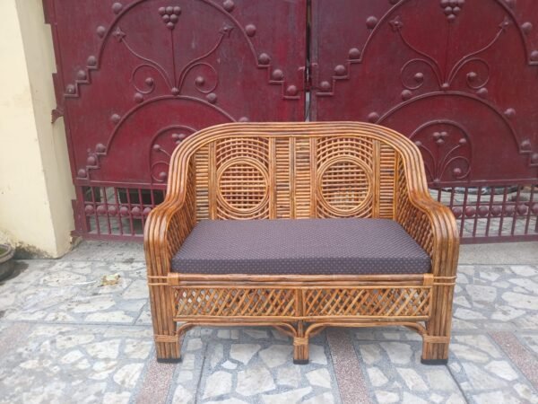 Upgrade your space with this Bamboo Cane Two-Seater Sofa with Cushions, a perfect blend of elegance and comfort. Handcrafted from premium-quality bamboo cane, this eco-friendly sofa adds a touch of natural charm to any setting.
