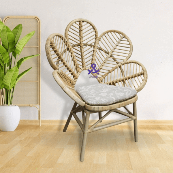Cane Flower Chair with Cushion – Perfect for Living Room, Events, Lawn, Restaurant, Studio, and Cafe