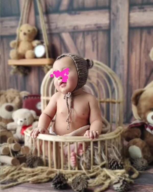 Capture your baby’s precious moments with our handcrafted Cane Posing Basket, designed especially for newborn photography. This beautiful Wooden Basket provides a natural, rustic charm to your photoshoots, making it a perfect prop for babies aged 0 – 2 months.
