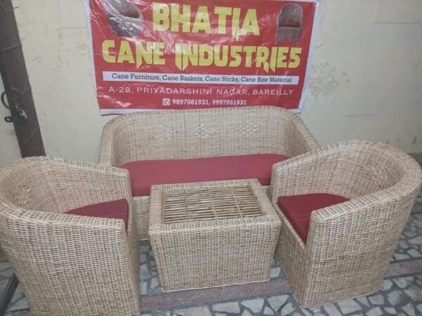 • Complete Cane Sofa Set: Includes 3-seater sofa, 2 single chairs, and 1 center table for versatile use in any space.