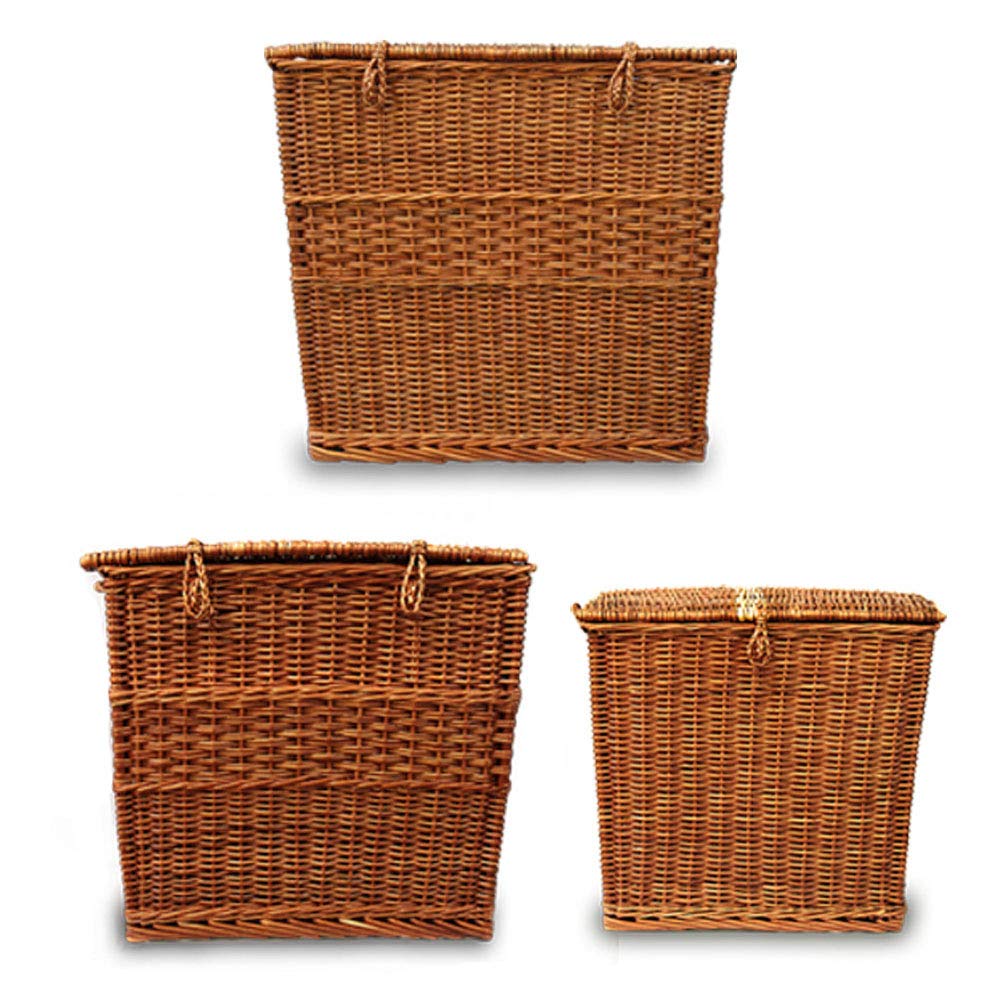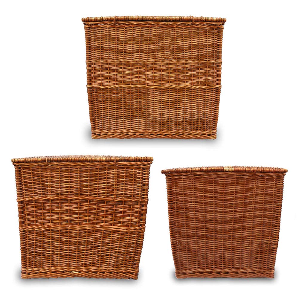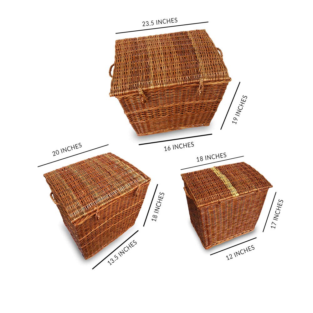 Bamboo cane Square Laundry Basket Set with Lid For Bathroom, Laundry Room Laundry Basket Toy Storage Basket Medium Set of 2