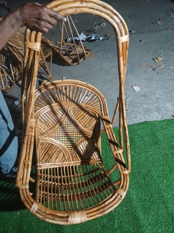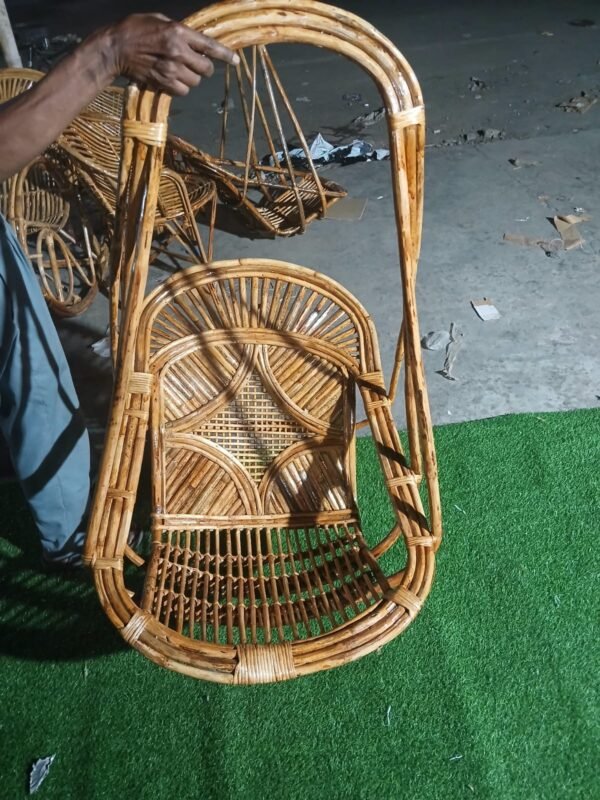 Elevate your relaxation experience with our versatile Cane Swing Chair suitable for all ages. This swing chair comes complete with a chain and cushion for added comfort and style. The swing chair size is Length: 23 inches, Width: 16 inches, Height with handle: 42 inches.