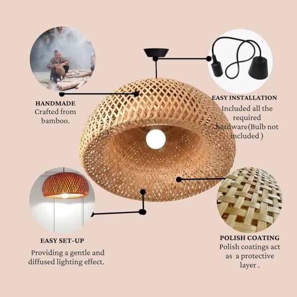 Crafted from natural Bamboo/Cane/Rattan, these lamp shades not only serve as decorative pieces but also contribute to eco-friendliness. Bamboo is a renewable resource, making these lighting fixtures a sustainable choice for environmentally conscious individuals.