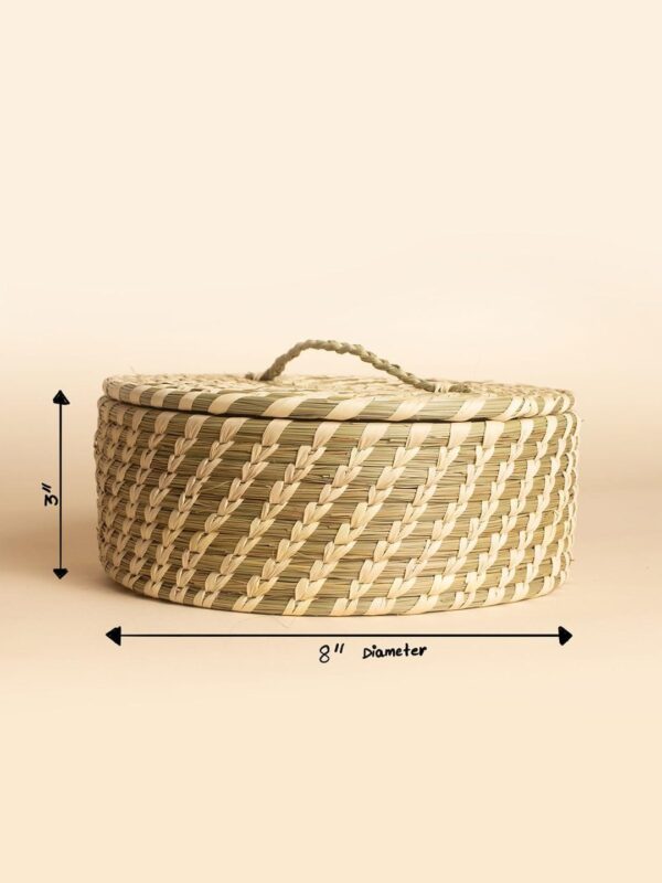 Elevate your dining experience with the Sabri Grass Roti Basket. This multipurpose basket is a versatile addition to your kitchen, serving as a stylish bread bin, fruit basket, or decorative centrepiece. Handcrafted from premium sabri grass, it exudes a rustic charm that complements any home decor. Measuring 8 inches, this basket offers ample space to store and display your freshly baked rotis, naans, or seasonal fruits. Its sturdy construction ensures long-lasting durability, while the natural fibres lend an earthy aesthetic. Whether you’re serving warm rotis straight from the tandoor or showcasing a vibrant array of fruits, this basket adds a touch of elegance to your table setting. Embrace the art of traditional Indian craftsmanship with the Sabri Grass Roti Basket.