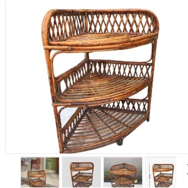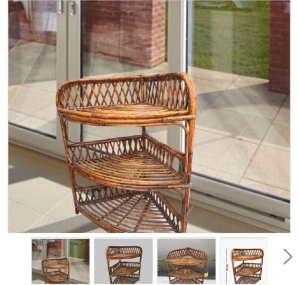 Elevate your home décor with the versatile and elegant Cane Corner Rack. This 3-shelf multipurpose unit is designed to seamlessly fit into any living space, making it ideal for organizing books, showcasing plants, or displaying your favorite décor items.