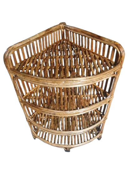 Elevate your home décor with the versatile and elegant Cane Corner Rack. This 4-shelf multipurpose unit is designed to seamlessly fit into any living space, making it ideal for organizing books, showcasing plants, or displaying your favorite décor items.