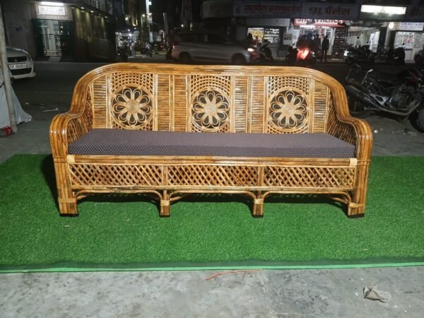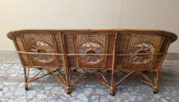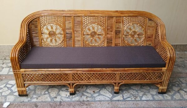 Elevate your space with this Cane Three Seater Sofa, designed to add elegance and comfort to your living room, garden, office, hotel, or resort. Crafted meticulously by hand, this versatile piece is ideal for both indoor and outdoor settings, showcasing a rustic and natural finish that enhances any décor style.