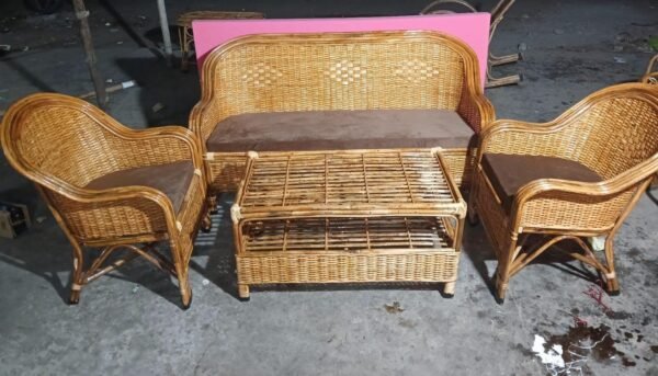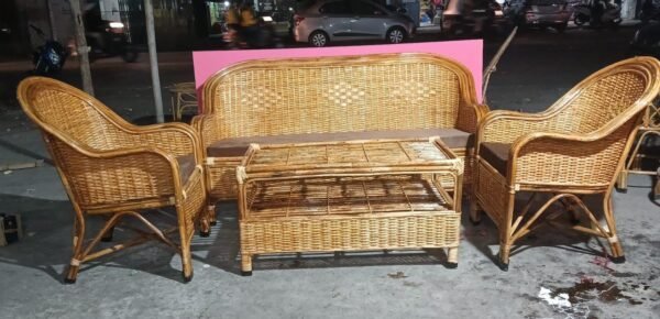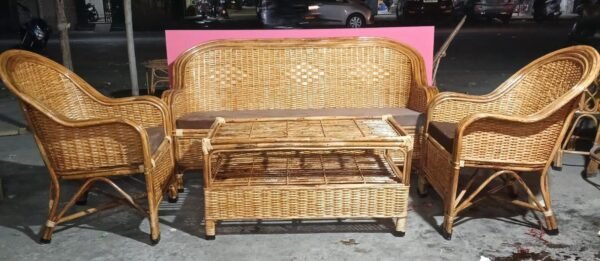 Transform your space with this elegant and functional Cane Bamboo Sofa Set with Table, offering comfort, style, and eco-friendly craftsmanship for your enjoyment.