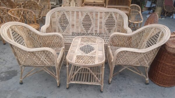• Complete Cane Sofa Set: Includes 3-seater sofa, 2 single chairs, and 1 center table for versatile use in any space.