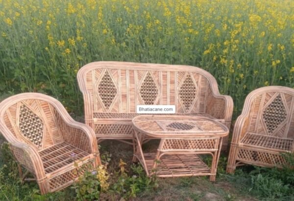 This Cane Sofa Set with Table is the perfect addition to your home, office, living room, garden, or resort. Designed with both style and comfort in mind, this set is meticulously handcrafted by skilled rural artisans using traditional hand tools, ensuring the finest craftsmanship.