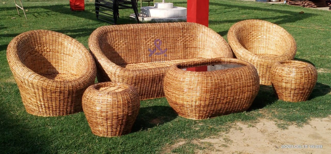 Rattan Cane Apple Sofa Set with Table, a beautifully crafted and handwoven sofa set that adds a touch of elegance to art-loving households and establishments. This set perfectly combines traditional elegance with contemporary convenience, creating an aesthetic look that enhances any space.