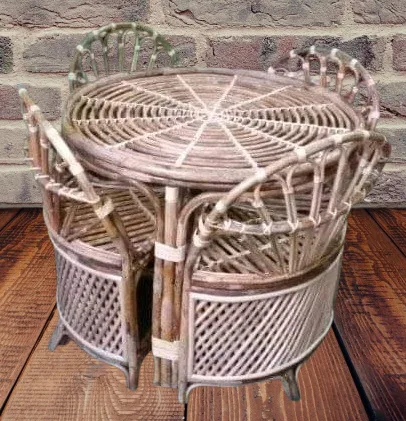 This elegant cane furniture set is perfect for both casual coffee gatherings and compact dining solutions. The set includes: