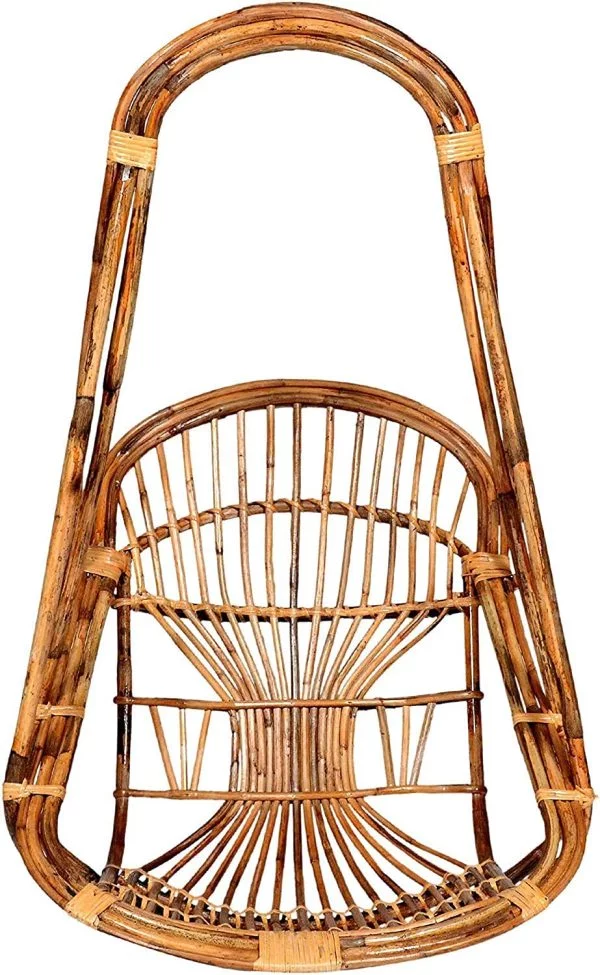 Enhance your relaxation space with our Rattan Bamboo Cane Swing Chair, designed for both kids and adults. The product dimensions are Length: 25 inches, Width: 20 inches, Height: 34 inches, with the chain length measuring 1 meter.