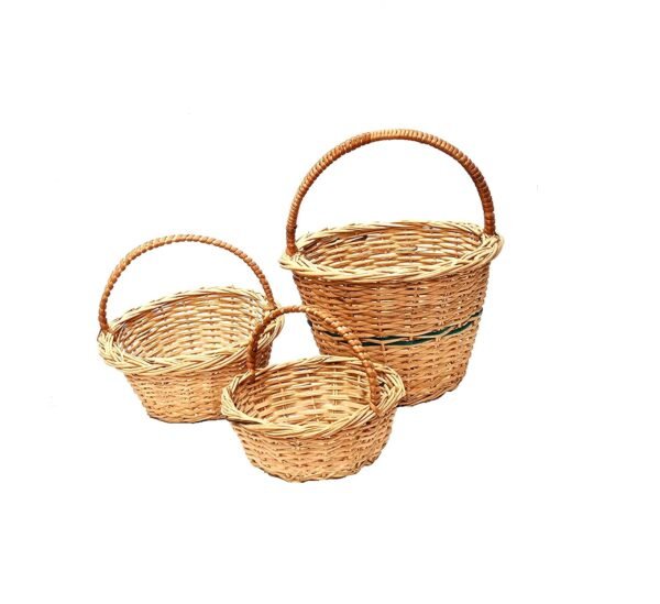 Round cane bamboo basket for hamper chocolate flower pooja cane basket, Festival Gifts Packing with Handle Set of 3 baskets