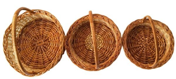 Round handle cane bamboo basket for multipurpose uses for hamper chocolate flower pooja cane basket,Festival Gifts Packing with Handle Set of 3 baskets. Size 9 inch, 8 inch, 7 inch